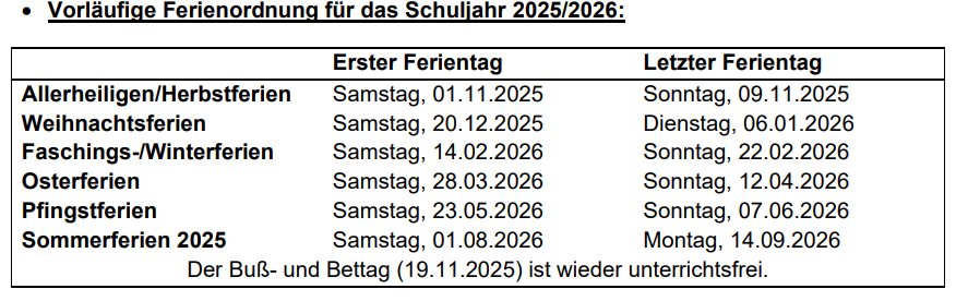 Weitere Ferienzeiten unter http://www.km.bayern.de/ministerium/termine/ferientermine.html